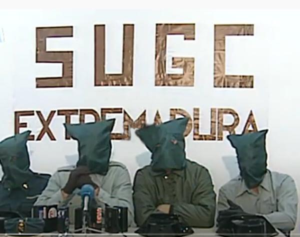 “Yo estuve con él allí tres o cuatro meses. Manolo venía de Logroño, que era una unidad grande, con las ideas muy claras. El venía a revolucionar Extremadura… y lo hizo”. Quien evoca ahora aquellos años es Paco Hernández, uno de los grandes amigos de Linde, un guardia civil polilla -el apelativo con el que se conoce a los hijos del cuerpo-, que le acompañará permanentemente en la lucha. El 16 de octubre el SUGC hace su aparición en Extremadura. Con los rostros cubiertos, tres guardias que han burlado al Servicio de Información, reivindican la desmilitarización del Cuerpo y reclaman la dimisión de los tenientes coroneles de Cáceres y Badajoz. “España es el único país de Europa en el que los militares denuncian en las carreteras, a los bares, a los cazadores y pescadores”, dice uno de sus portavoces. Paco recuerda la primera presentación del SUGC en Badajoz, que se hizo en la sede la UGT. “Teníamos todo preparado, los periodistas escondidos por ahí. Luego nos fuimos, nos quitamos las capuchas. Manolo, Juanito y yo, solo tres guardias civiles. Tiré el chándal, pensé que lo iban a reconocer los de Información. Solo tres de ellos éramos guardias civiles. El resto eran mujeres y amigos, incluso algún policía nacional que se sumó”.