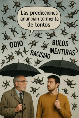 Idiotas no sé si llegarán a caer de las nubes pero con los que circulan por la tierra tragándose todos los bulos y discursos torticeros que la derecha y ultraderecha esparcen ya tenemos suficiente.